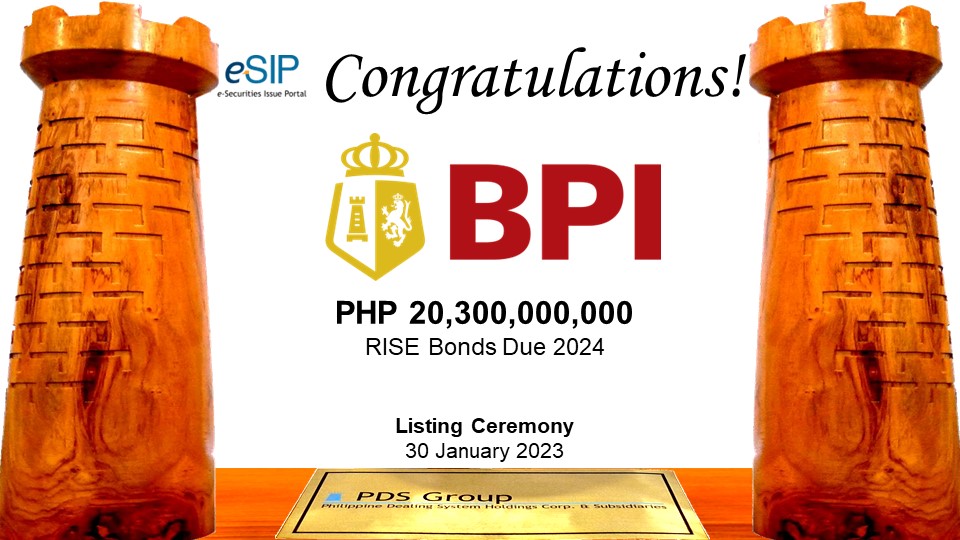 30 January 2023, Makati, Philippines — Bank of the Philippine Islands (BPI) lists its PHP 20.3 billion Reinforcing Inclusive Support for MSMEs Bonds (RISE Bonds) on the Philippine Dealing & Exchange Corp. From the original issue of PHP 5 billion, the BPI RISE Bonds is more than four (4) times oversubscribed. The 1.5-year bonds have quarterly coupons priced at 5.7500% per annum, and its proceeds will be used to finance or refinance the business requirements of eligible MSMEs consistent with the bank’s sustainable funding framework.