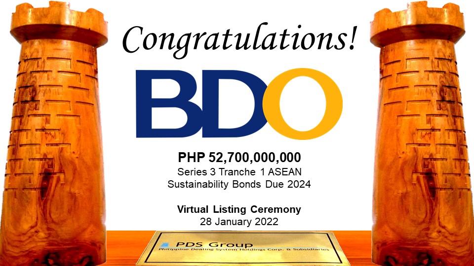 PDEx Welcomes 2022 with BDO Unibank, Inc.'s Listing of PHP 52.7 Billion Asean Sustainability Bonds